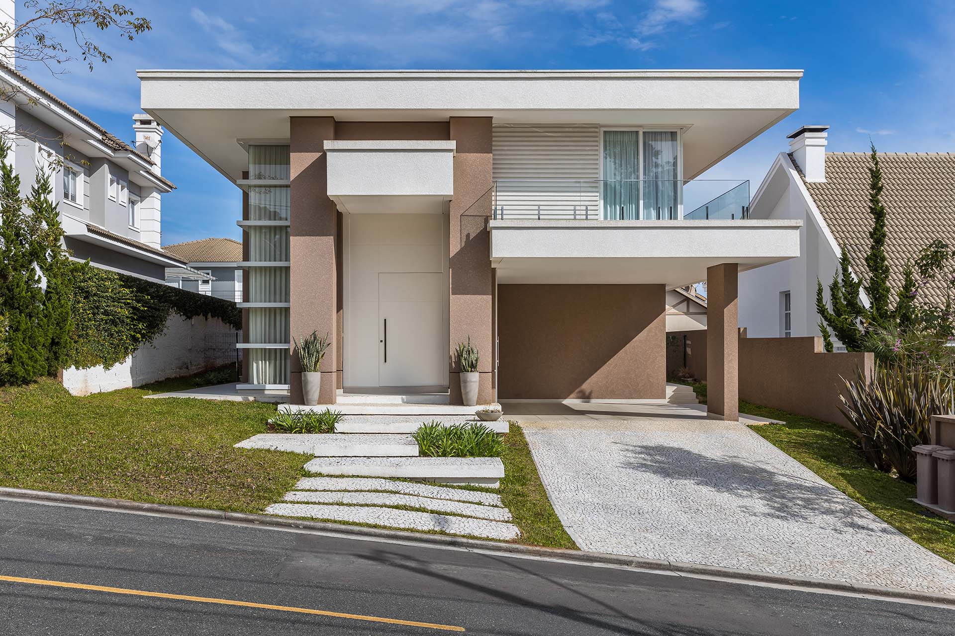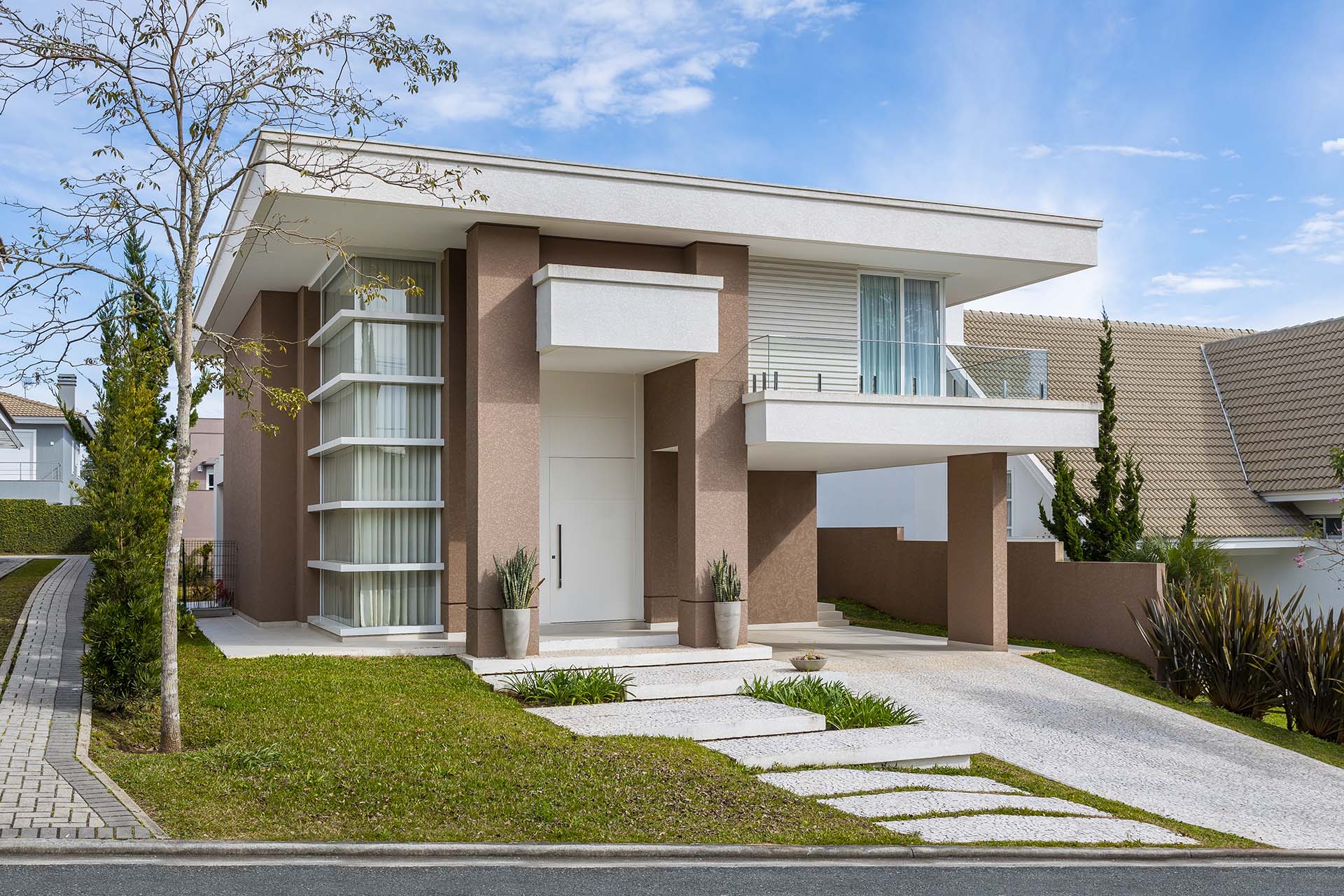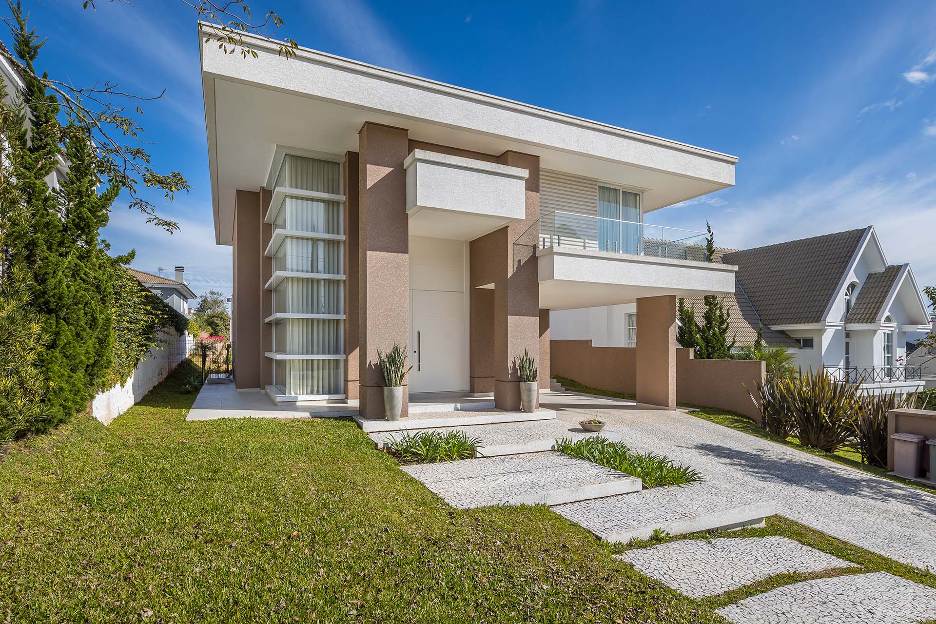 Incorporando lembranças de linhas clássicas em seu estilo moderno, com linhas retas e fortes a arquitetura moderna se destaca.