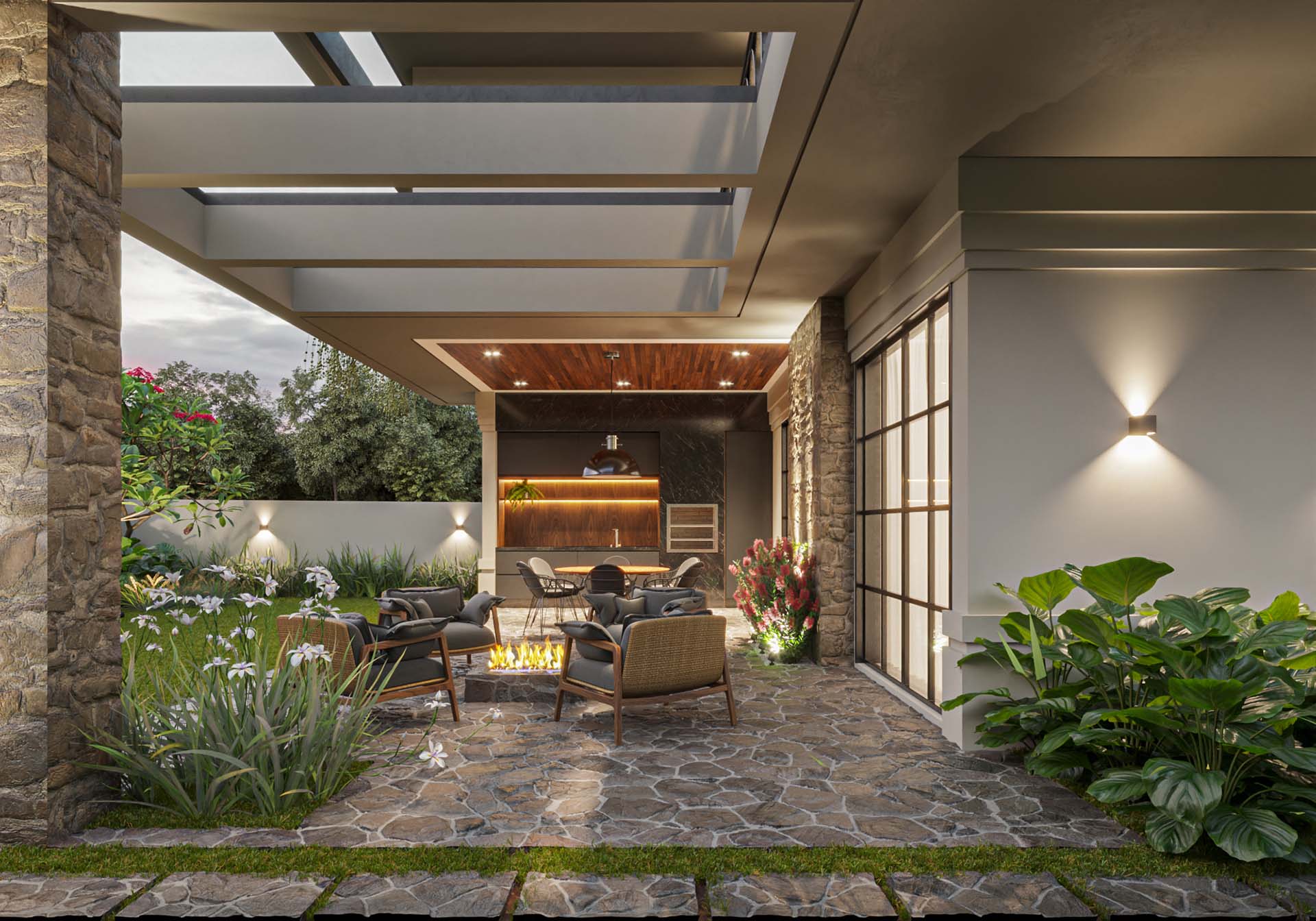A residência T.J. foi pensada de dentro para fora, com ambientes amplos e iluminados e nasceu inspirada por referências de casas estilo americano com arquitetura brasileira. É a materialização de um sonho.